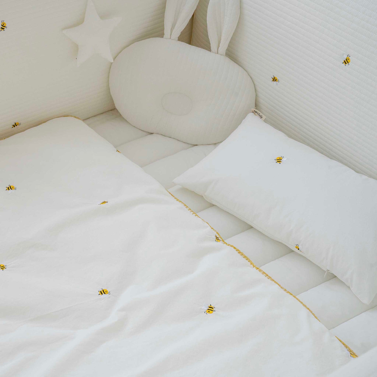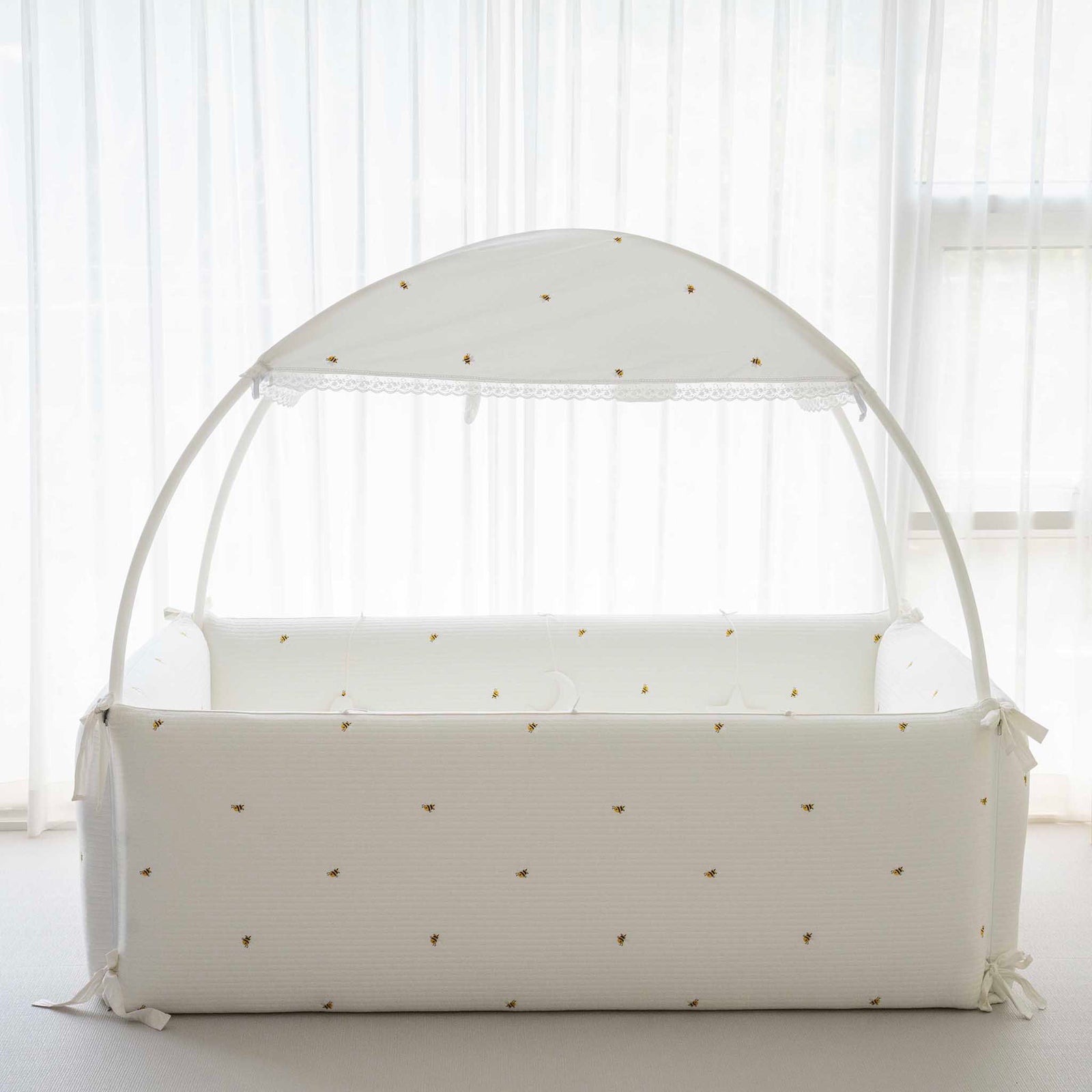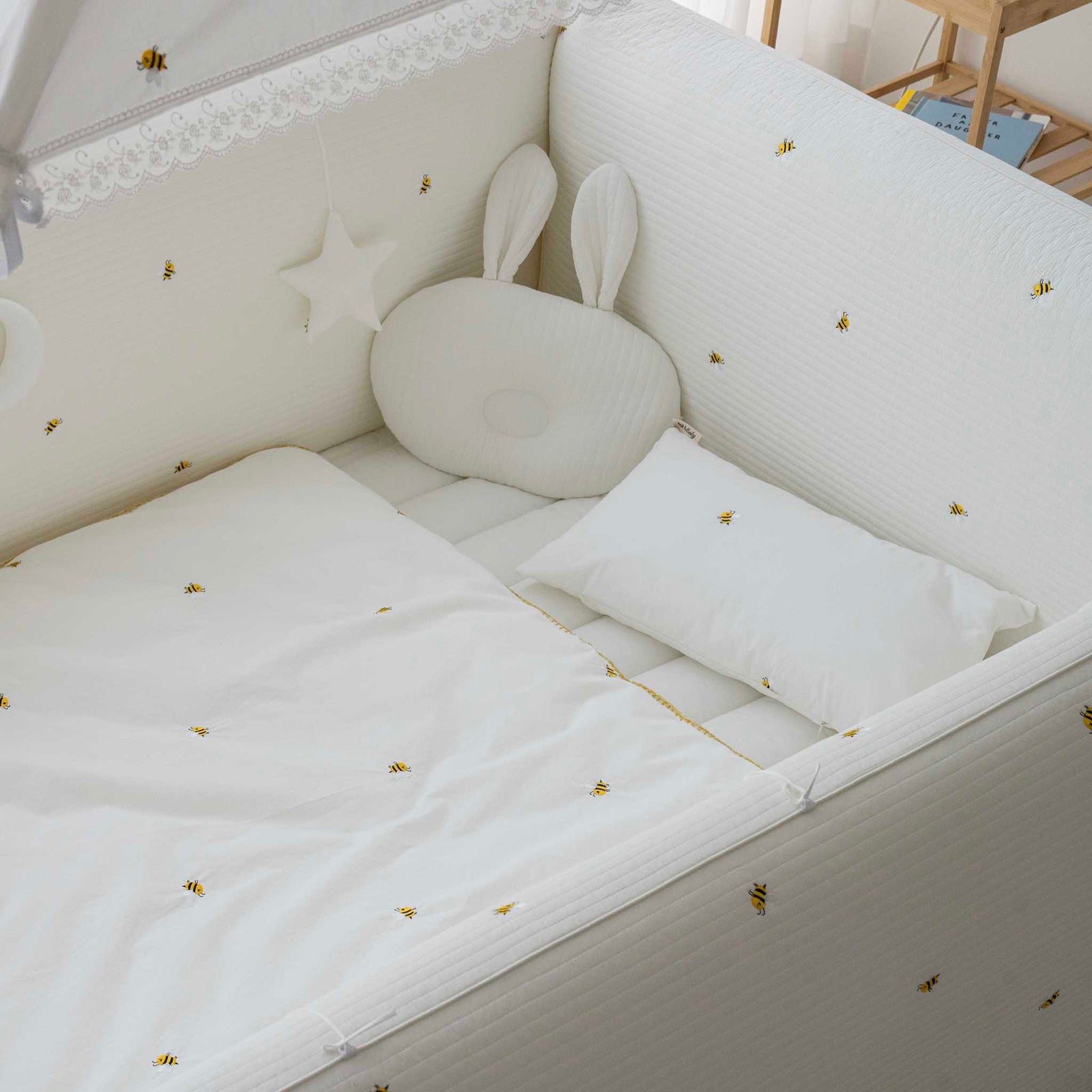 LOLBaby Cotton Embroidery Bumper Bed with Hanging Toy and Canopy - Honey Bee