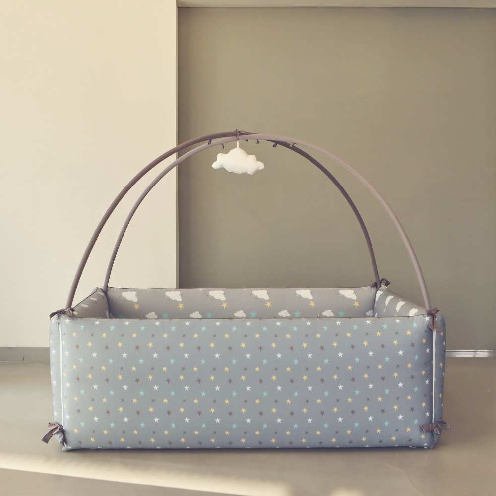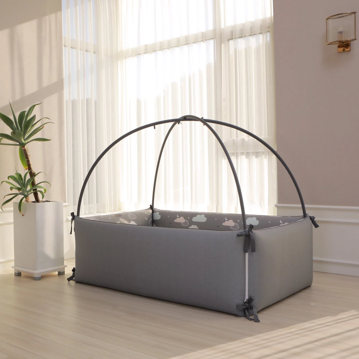 LOLBaby Cotton Embroidery Bumper Bed with Hanging Toy and Canopy - Moon Star Grey