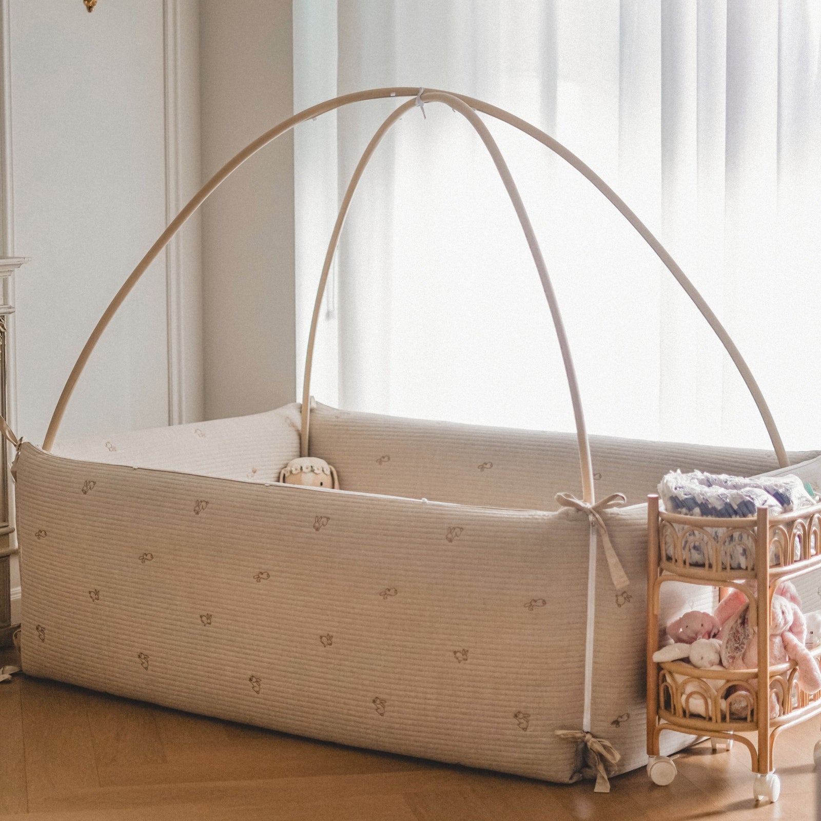 LOLBaby Cotton Embroidery Bumper Bed with Hanging Toy and Canopy - Cherry Beige