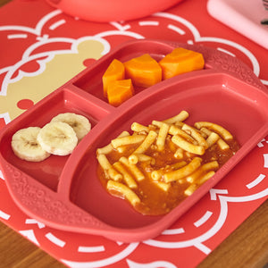Marcus & Marcus’s portable and stackable Silicone Divided Plates features three sections to help guide parents with portion control and to keep food separated for picky eaters. The grippy handles gives your little one the confidence to bring their meal anywhere. Unlike melamine, our silicone is food grade and shatter proof. Our silicone divided plates are molded from BPA and Phthalate free materials.