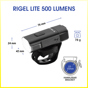 Featuring 500 lumens, light-weight, anti-dazzling rotatable lens, Garmin-style bracket, IPX7 water resistance, lumens personalization and more.