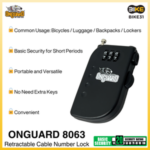 OnGuard 8063 Retractable Cable Number Bicycle Lock (90cm x 2mm dia)
