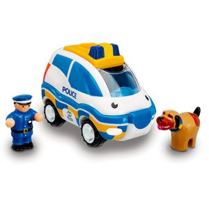 Charlie’s WOW button opens his roof and his policeman Play Friend fits neatly inside; There's even a place for his trusty police dog Animal Friend to sit on the roof. When the call comes in, Charlie's Push & Go motorised engine powers him straight to the next crime scene in WOW Town.