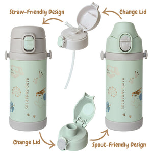 Introducing the Marcus & Marcus Straw & Spout Insulated Water Bottle, the perfect companion for your little adventurers! This versatile hot water insulated bottle features two convenient caps, allowing kids to choose between a straw or spout for their drinking needs—because why settle for one when you can have both?