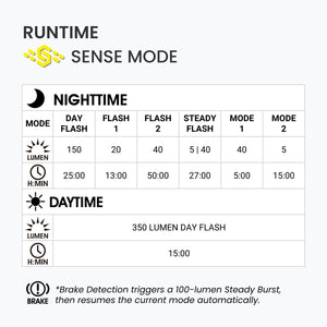 Nebula 2 Sense 350 LM smart taillight with auto brightness, brake alert, and long runtime. USB-C charge, IPX7 waterproof. Saddle mount provided.